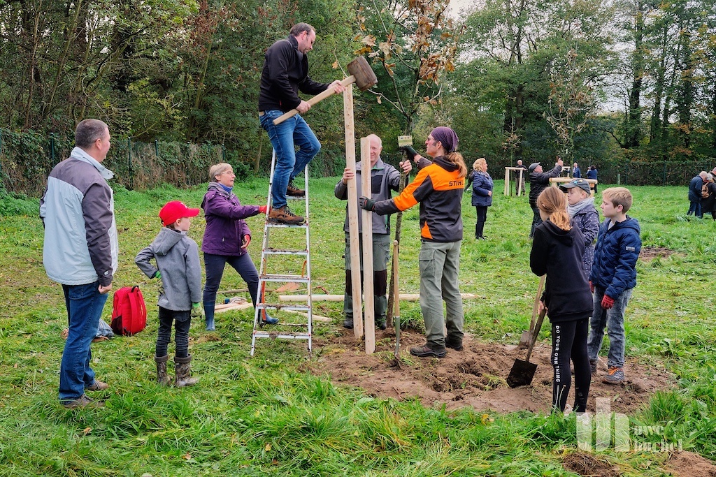 Auf dem ehemaligen Trainingsgelände der V.f.R. Tüddern versammelten sich am 05.November 2022 um 11:00 Uhr zahlreiche Bürgerinnen und Bürger um 41 Bäume zu pflanzen. Mitorganisator Heinz Walter erklärte in seiner Ansprach wie es dazu kam: „In einem intensiven Gespräch zwischen Osman Djajadisastra und mir, in dem es um Klimawandel, um das Aufheizen der Bebauung mit ihren Häusern, Mauern und Zäunen mit ihren Asphalt- und Pflasterflächen ging, war die Idee „wieder Bäume und Grün innerhalb des Dorfes“ einzubringen, geboren. Die Beschattung der genannten Flächen wäre zweckmäßig/hilfreich, um die länger andauernden und heißer werdenden Sommer erträglicher zu machen. Grüne Plätze, eine Allee oder eine geschlossene Baumreihe innerhalb Dorfes umzusetzen, erwies sich als schwierig. Da kam die Idee vom Bürgerwald als Teil eines Grüngürtels gerade recht, um zeitnah etwas bewegen.“