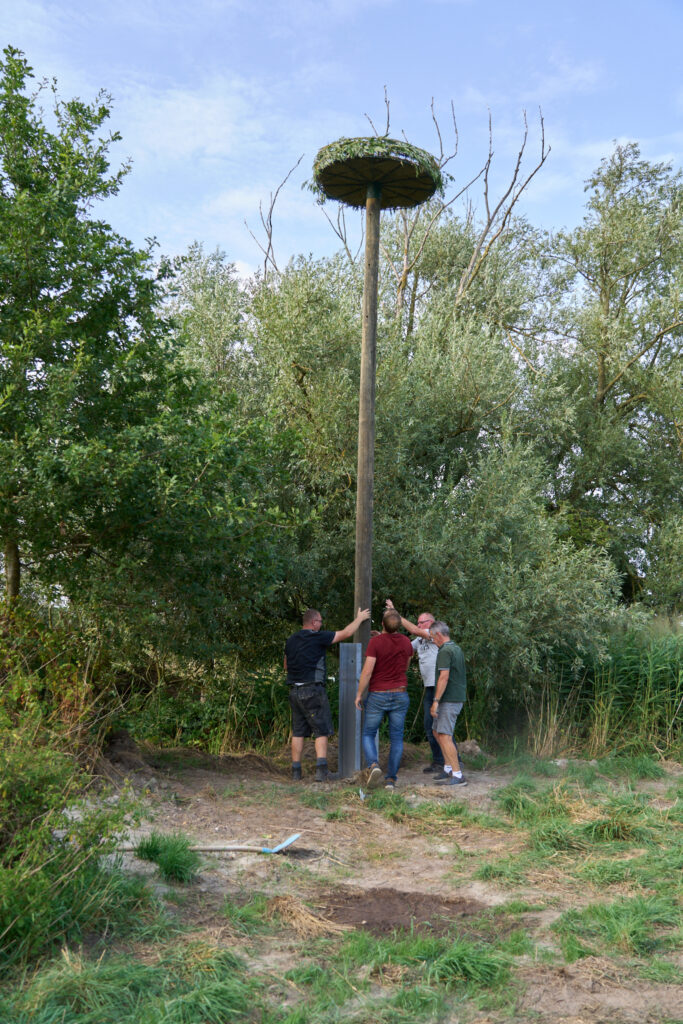 Der Dank gilt als erstes den Kollegen vom Bauhof für die Baggerarbeiten. Mit im Boot war der Stahlbaubetrieb Trepels aus Gangelt, der die Halterung für den Mast, sowie das Nest angefertigt hat. Des Weiteren die Jägerschaft aus dem Ort, die den Mast kostenlos zur Verfügung gestellt hat.