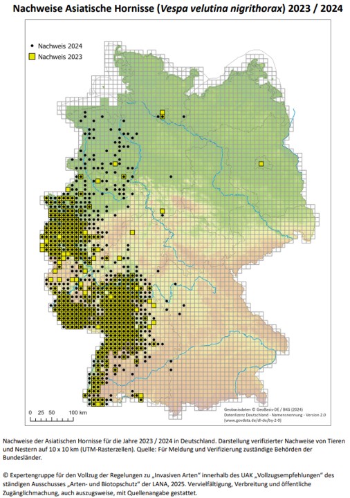 Die Asiatische Hornisse breitet sich trotz mehr oder weniger umfangreichen Bekämpfungsmaßnahmen in Deutschland weiter aus.