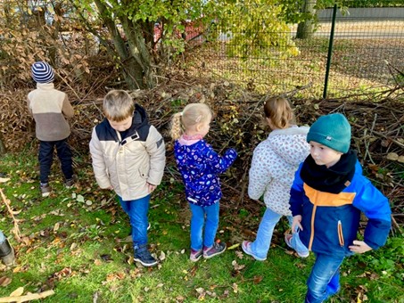 Eine Zeit lang stand der Igel im Mittelpunkt des Sachunterrichtes. Und am 12. November, einem sonnigen Herbsttag, ging es in die Natur und zwar zum naturnah gestalteten Spiel- und Erlebnisraum Heggeströper. Zusammen mit einem Nabu-Ehrenamtler wurde nicht nur das erstaunlich detaillierte Wissen über Igel zusammengetragen und gefestigt. Es galt auch, fleißig Zweige, Blätter und Moos zu sammeln und die bereits bestehende Benjeshecke igelfreundlich zu erweitern.